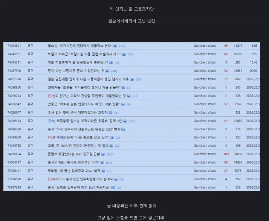 저격)???:아까 슈카글 지워짐 ㅠ 애니게시판 12 29 0 0 02.08 23:26 주소복사 복사되었습니다! 저격)???:아까 슈카글 지워짐 ㅠ ??? : (고양이 자랑글에)나비탕 밀키트구나~ ??? : (온갖 개씹소리 음담패설 달고 논란 일어나니 댓삭튀) ??? : 이슬람 탄압만이 답이다(댓삭튀) ??? : 나 본계있지만 깡계로 글씀 ㅋㅋ 오 활동내역 레전드 ㅋ 0 0