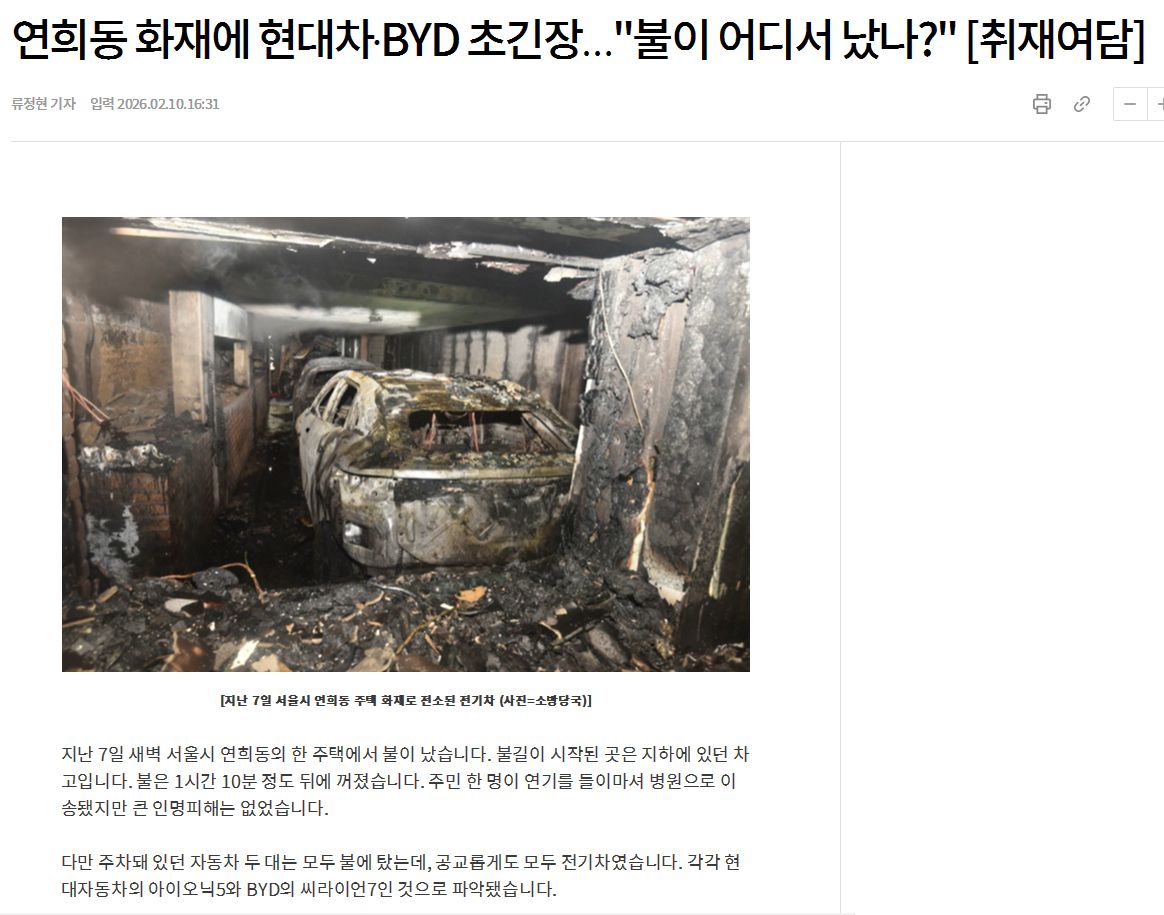 연희동 화재에 현대차BYD 초긴장... "불이 어디서 났나?" ㄷㄷㄷㄷㄷㄷㄷㄷㄷㄷㄷㄷ