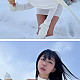 눈밭에서 아이스크림 들고 흰 오프숄더 가슴골 노출한 표…