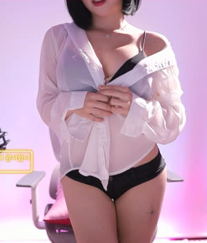 김우유 흰셔츠 블랙 브라 가슴골 골반
