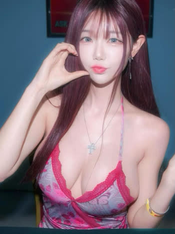 회색 CK 브라 입고 숙여준 QWER 리더 쵸단 뽀얀 가슴골