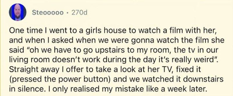 여자애 집에 영화 보러 갔는데. 여자애가 거실 티비 고장나서 이층 침실에 있는 있는 티비로 봐야 된다는거야.
