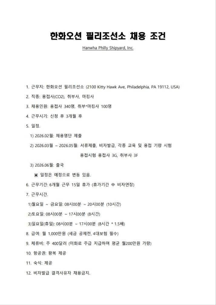 기술자가 해외 주7일 근무인데