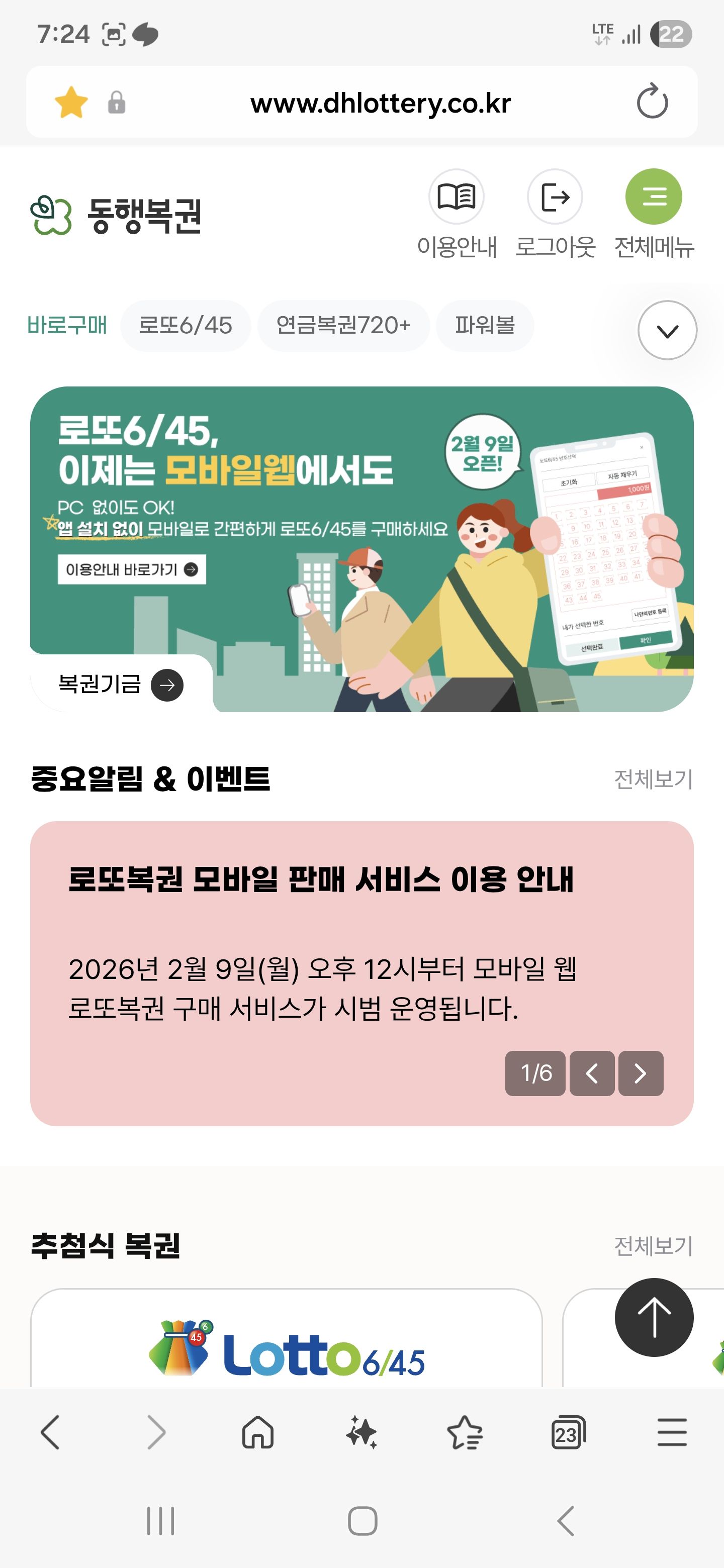 연금복권은 되는데 로또는 안됨. 구매하기 누르면 그냥 흰페이지만 나옴..