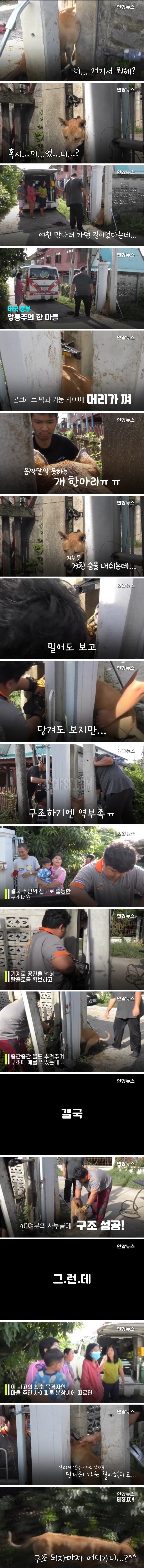 벽과 기둥사이에 끼어버린 댕댕이의 최후