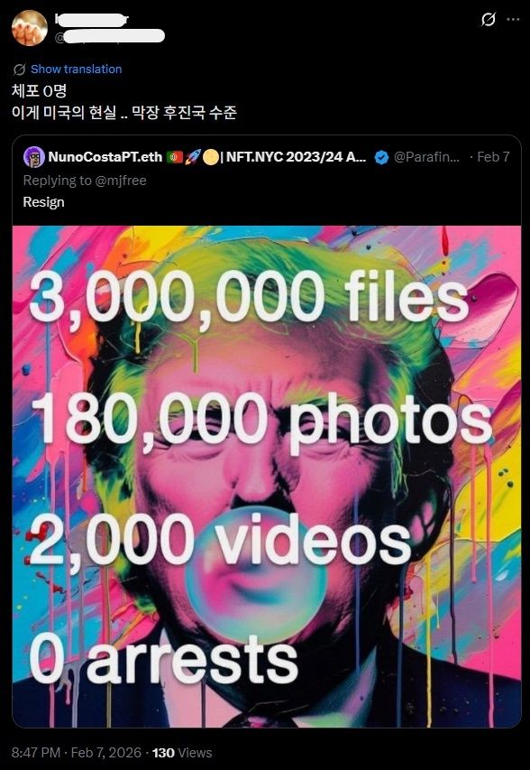 천조국의 현실.jpg magicfbi 0 8 0 0 1시간전 주소복사 복사되었습니다! 파일 3백만개 사진 18만장 영상 2천본 체포 0명 앱스타인 절친의 선긋기 좋나 안 친했거든? 엡스타인하고 엮는 놈들 다 좌파들. 너 고소 역시나 거짓이 일상인 빌런이 불리하면 좌파 드립 치는 게 참 익숙한 장면이네. 0 0