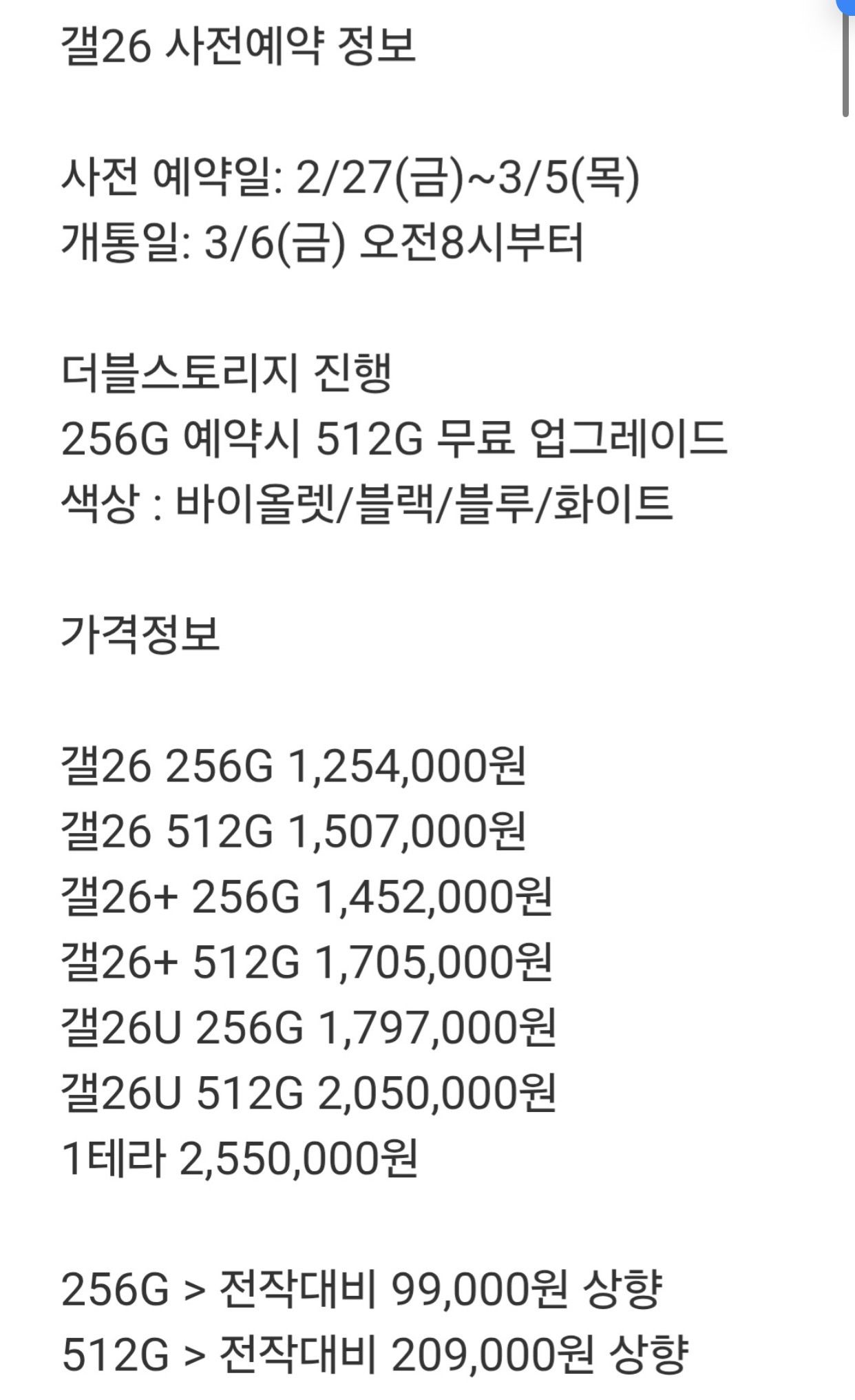 갤럭시s26 출시가 ㄷㄷㄷ .jpg 꼬마야놀자 0 13 0 0 02.11 23:32 주소복사 복사되었습니다! 출처는 카톡발 찌라시라 참고만 하시면 될듯 s25 대비 장점이 딱히 없는데 출시 이벤트로 512 사는게 좋을듯 0 0