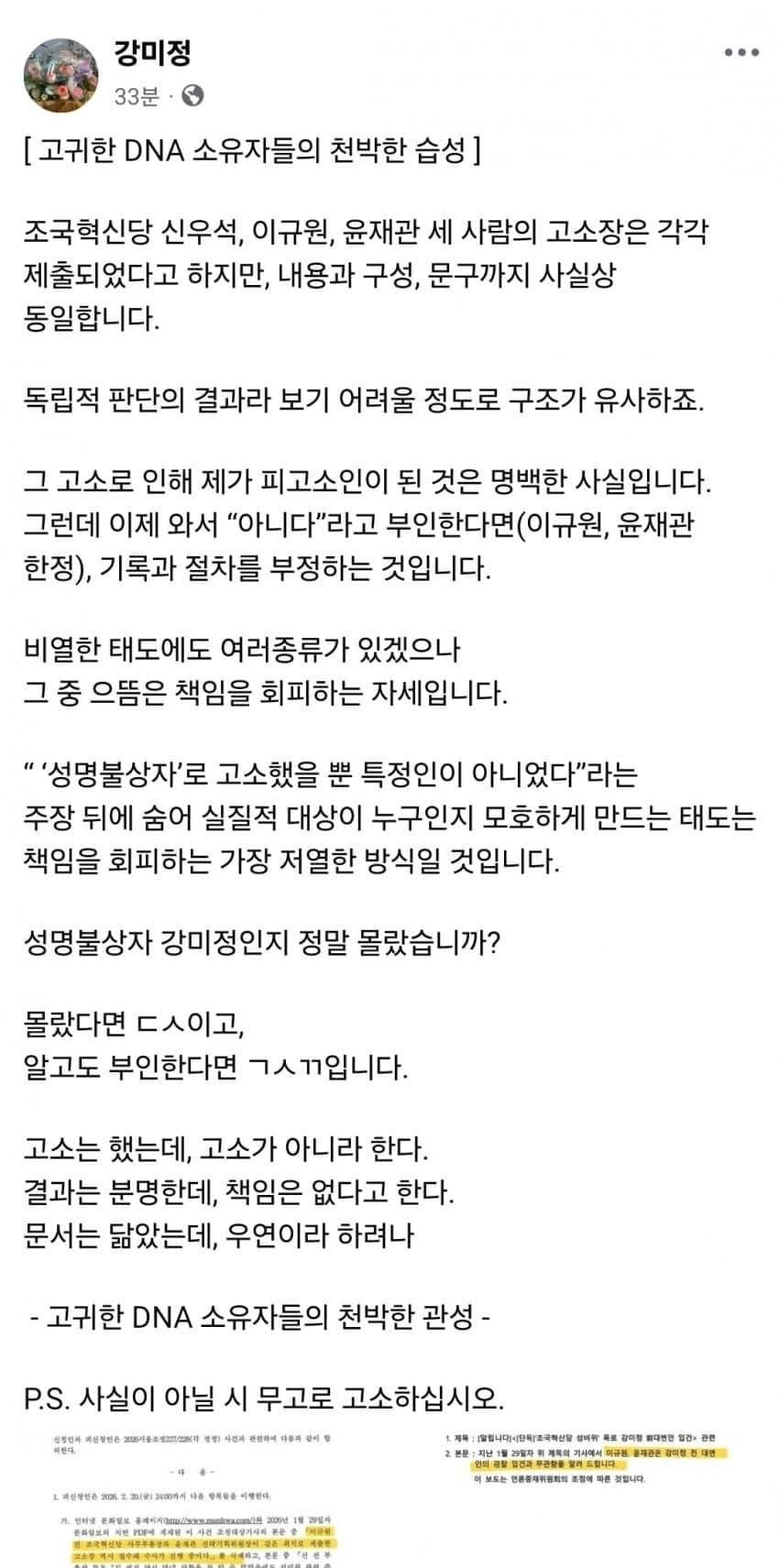 강미정, 조국혁신당 인간들이 날 고소했다.