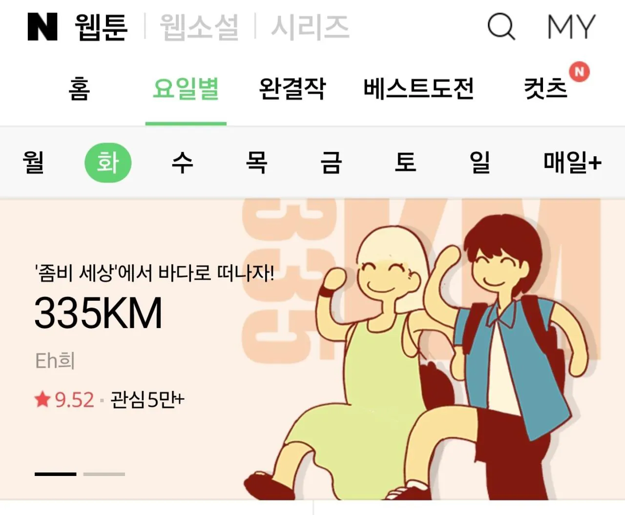 독특함으로 꽤 인기를 얻은 네이버 웹툰 335km