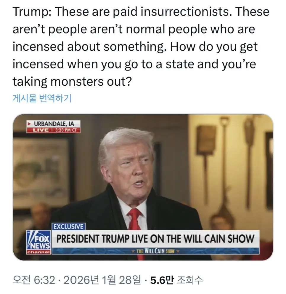트럼프 “시위는 돈받은 폭도들이 하는 것… 괴물 소탕하는데 왜 화...