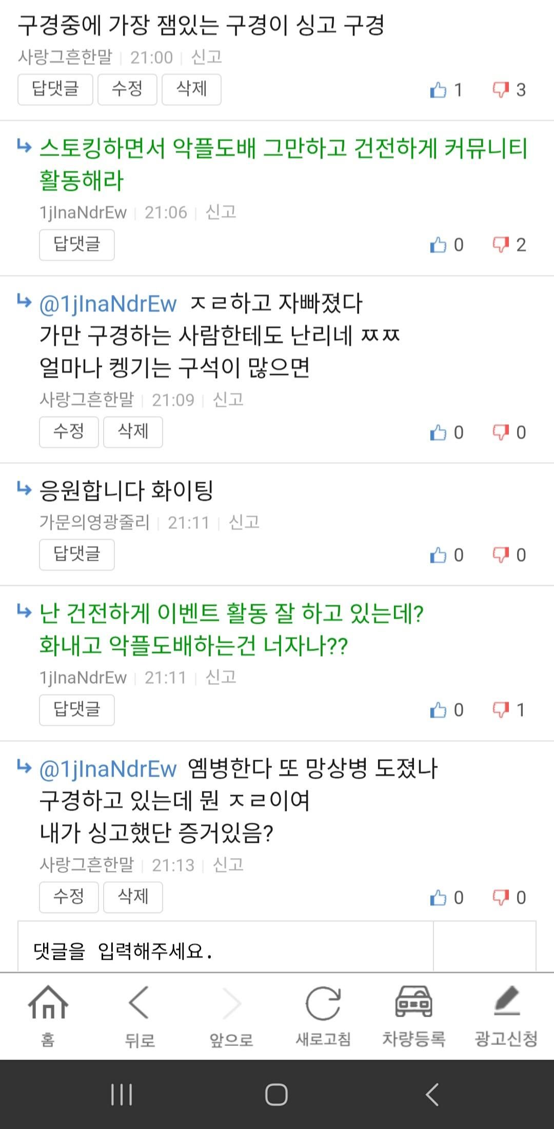 옘병하고 자빠졌다 왈라우 4 11 0 0 2시간전 주소복사 복사되었습니다! 피해망상증 도졌냐 가만 구경 잘하고 있는 사람한테 뭔 ㅈㄹ이여 난 구경만 하고 있다 내가 오늘 싱고했단 증거있냐? 풉~~~ 0 0