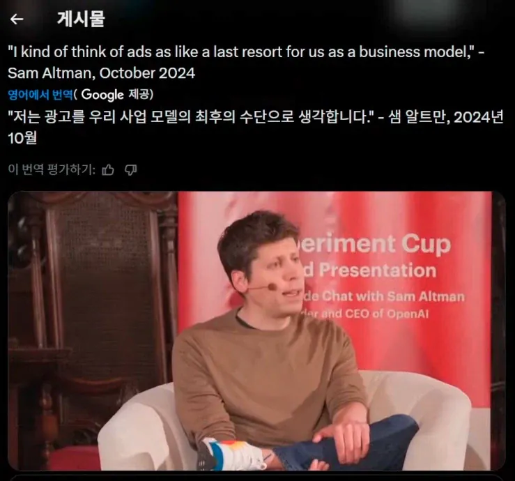 샘 vs 알트만 박하썬 0 5 0 0 3시간전 주소복사 복사되었습니다! "광고다는짓은 최후의 수단" 광고가 답변내용에는 영향을 주지않으며...... 18세 미만에게는....... 주절주절...... 0 0